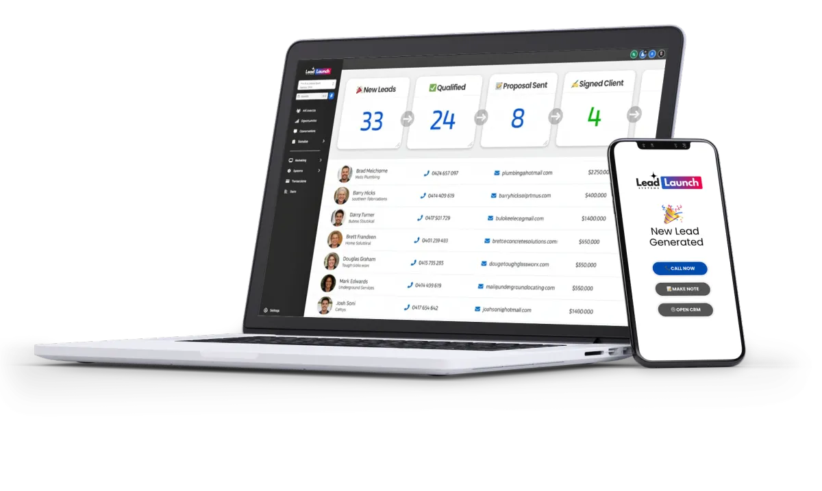 Most CRMs just store contacts and data. LeadLaunch actually finds leads and automates your pipeline — generating new leads, creating proposals, reports and even signable agreements at the click of a button. It’s a self-serve lead generation and sales machine, not just another CRM.